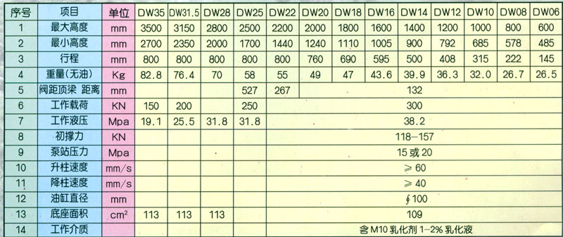 DW系列外注式液壓支柱 >> DW系列外注式單體液壓支柱
